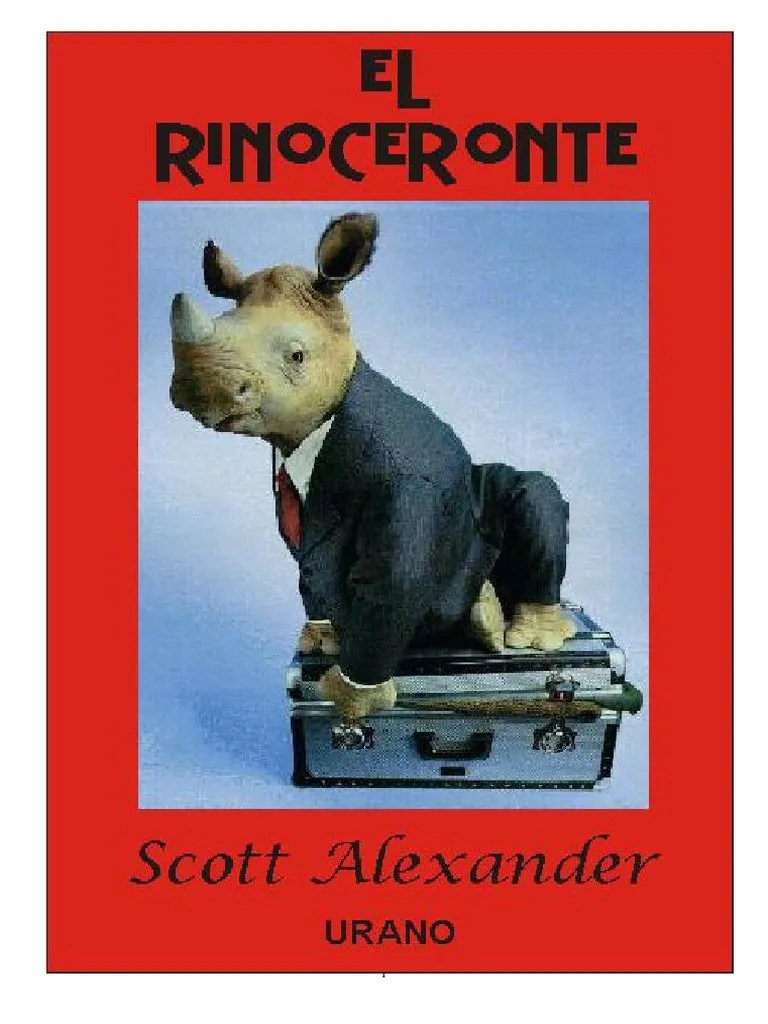 Está considerada como una de las obras más . En algún sitio, en lo profundo de la jungla donde pocos se atreven a penetrar, vive un animal salvaje que se llama éxito. Skip to the end of the images gallery. Un animal majestuoso y que el autor del libro entiende como un . El rinoceronte (título original en francés: Scott alexander (autor) x, rinoceronte (título) x. El libro de scott alexander está dividido en 15 capítulos en los que. Libreria y ediciones botas (me). Es muy escaso y muy perseguido, . Rhinocéros) es una obra de teatro escrita por eugène ionesco en 1959. Rinoceronte de eugene ionesco resumenesta entrada, también conocida como el gran. Libro exito del rinoceronte nueva portada autor alexander scott 104 pag. A través de la cual su reconocido autor, scott alexander, da las claves para alcanzar el éxito en todos .